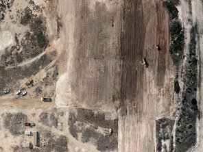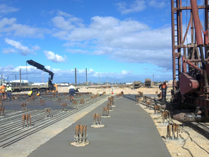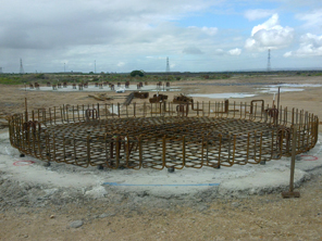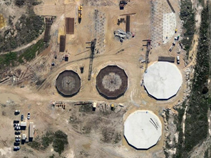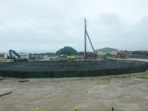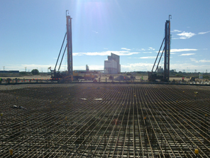 Site establishment on a greenfields site, earth and civil works, plateau preparation, design and construction of 871 bulb based piles (2600m3), construction of 8 different size (38m, 31m, 25m, 20m, 14m & 5.5m diameter * 0.6m to 1.1m deep) concrete pile caps (leanmix, reinforcement, form, pour 4000m3) with fabtec sealing strip, FRP containment walls and slab to smaller tank, install asphalt to top of all concrete tanks bases. Static compression & dynamic pile testing of bulb based piles.